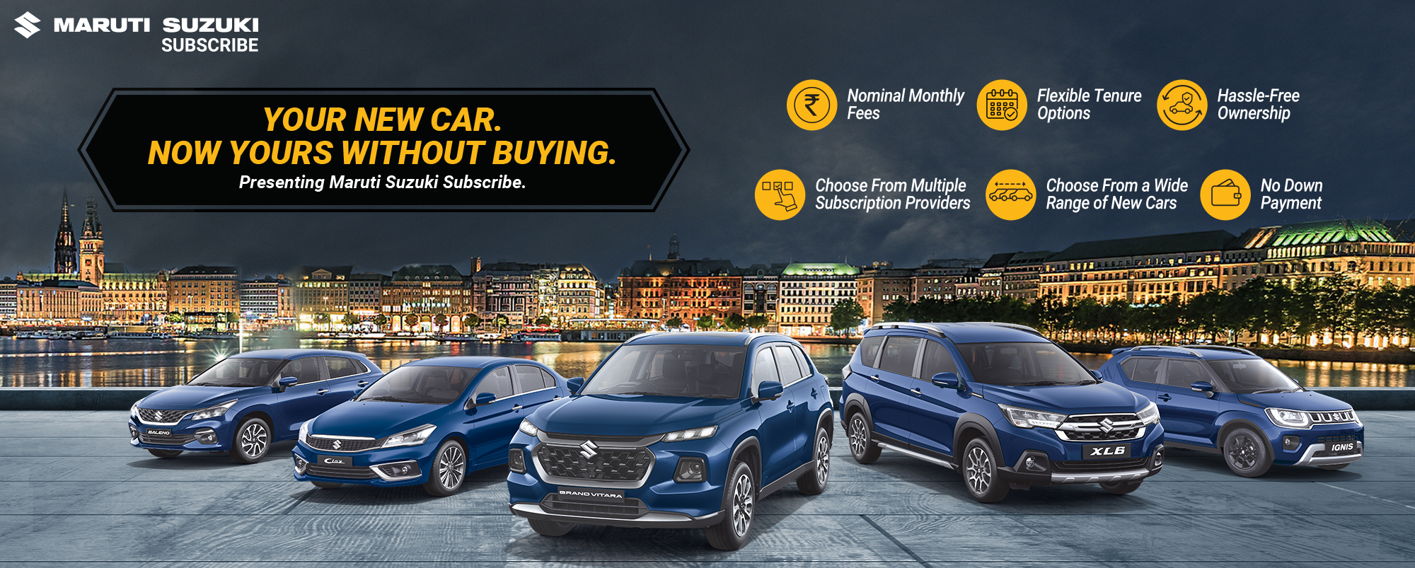 Maruti Suzuki Subscribe enables all customers to enjoy driving their preferred Maruti Suzuki cars without having to deal with all the financial responsibilities that come with owning a car.All you need to do is opt for a monthly subscription plan at a fixed monthly fee, which includes the routine maintenance and insurance costs, and choose a flexible tenure. At Bhargavi Automobiles Pvt Ltd in, , Nellore, all Hatchback, Sedan, SUV, the MUV models line-up includes Baleno, Invicto, EVitara, Jimny, Ciaz, Ignis, Fronx, Grand Vitara, XL6. Here, you will enjoy Maruti Suzuki Subscribe benefits such as: